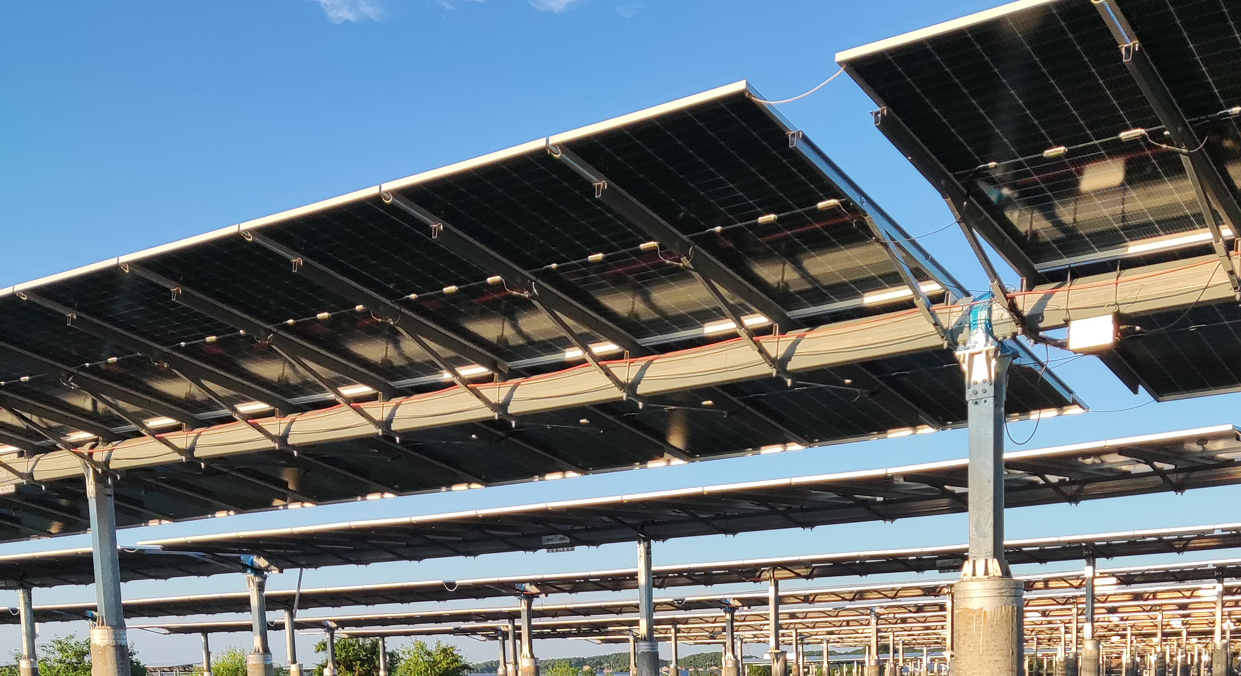 超低能耗,安装便捷:单台运行一个月2度电,支架设计对地形平整度要求低,调试速度达4-5MW/天/人;